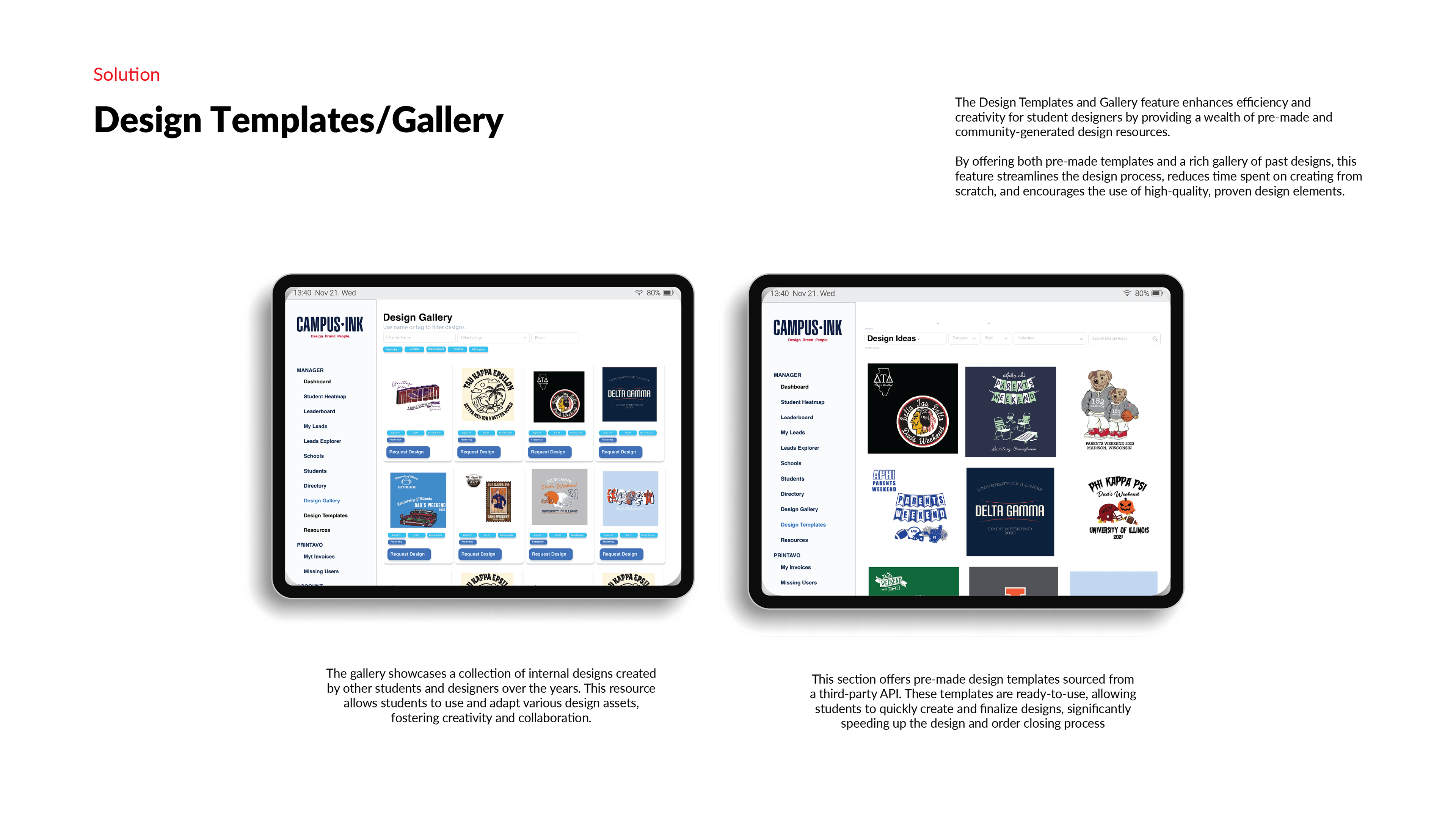 - Designed a scalable platform to empower student designers, enhancing user experience and operational efficiency.