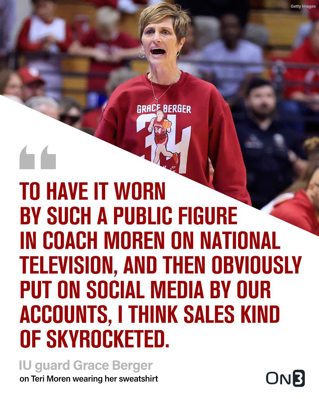 Indiana women's basketball coach Teri Moren and guard Grace Berger, illustrate the impact of the NIL (Name, Image, and Likeness) era on college sports. Before a high-profile game against the North Carolina Tar Heels, Moren showcased her support for Berger by wearing a sweatshirt featuring the player’s name and likeness, sold by Campus Ink through The NIL Store. This gesture came shortly after Berger suffered a knee injury, making the support even more meaningful.